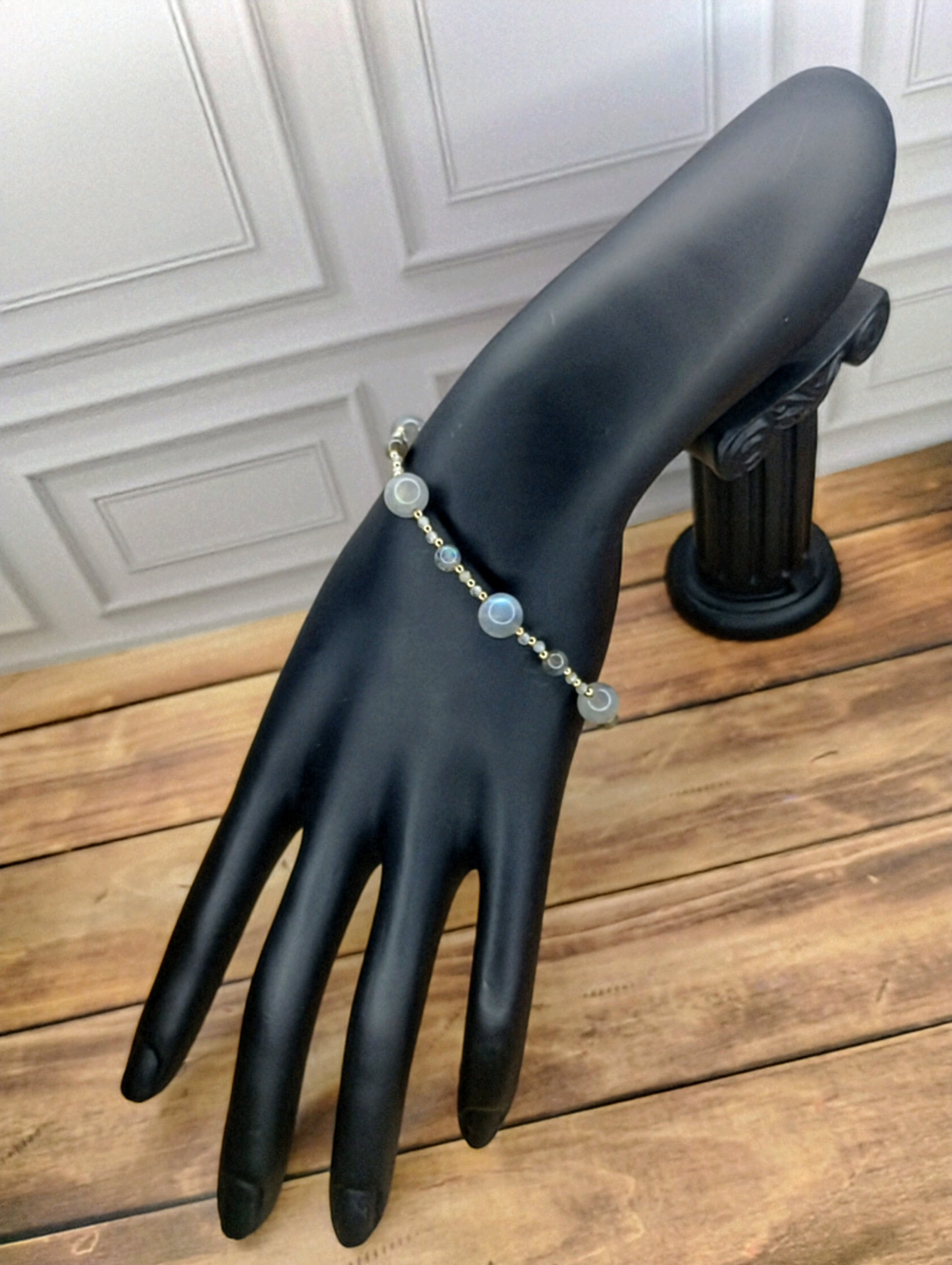Soft, luminous, and effortlessly elegant, this bracelet features glowing labradorite accented with sparkling natural zircon — one of the oldest known minerals on Earth. Some zircon crystals date back over 4.4 billion years, making them older than the continents themselves.